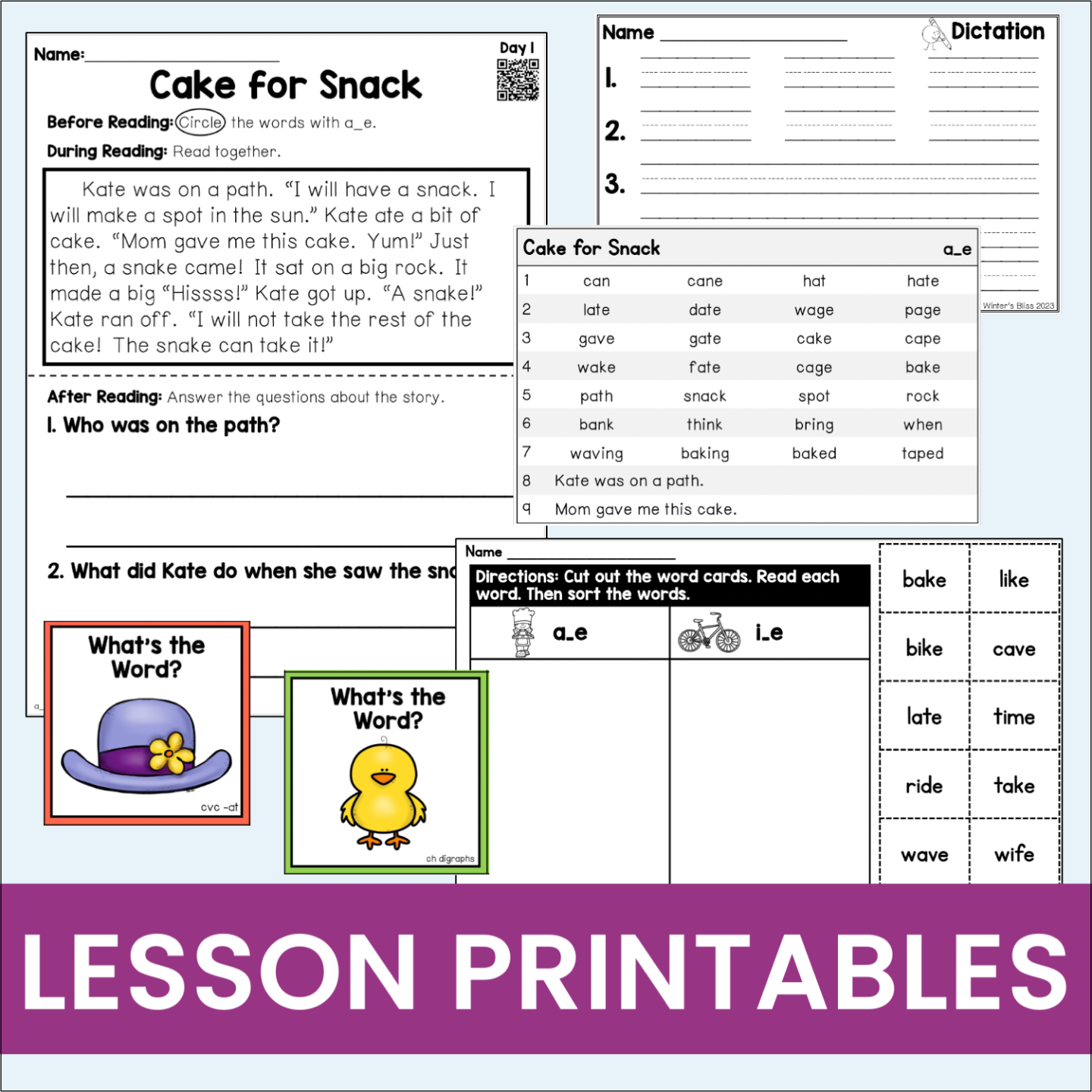 Includes word mapping cards, blending lines, decodables, dictation & word sorts.
